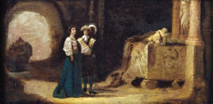 1733 Paris - 1808 Paris attr. Adliges Paar beim Besuch eines römischen Sarkophags. Öl auf Holz. Größe ca. 12 x 23 cm Rahmen ca. 27 x 38,5 cm. Guter Zustand.