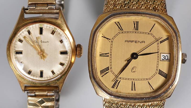 Diverse Fabrikate, U.a. GUB, Glashütte S.A., Bulova, Bourbon, Lucerne (läuft nicht), Minilip, Centaur, diese sechs mit mechanischem Werk und drei Quarzuhren (laufen nicht). Altersbedingte Zustände wie abgebildet, bitte selbst besichtigen.