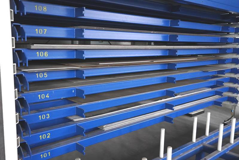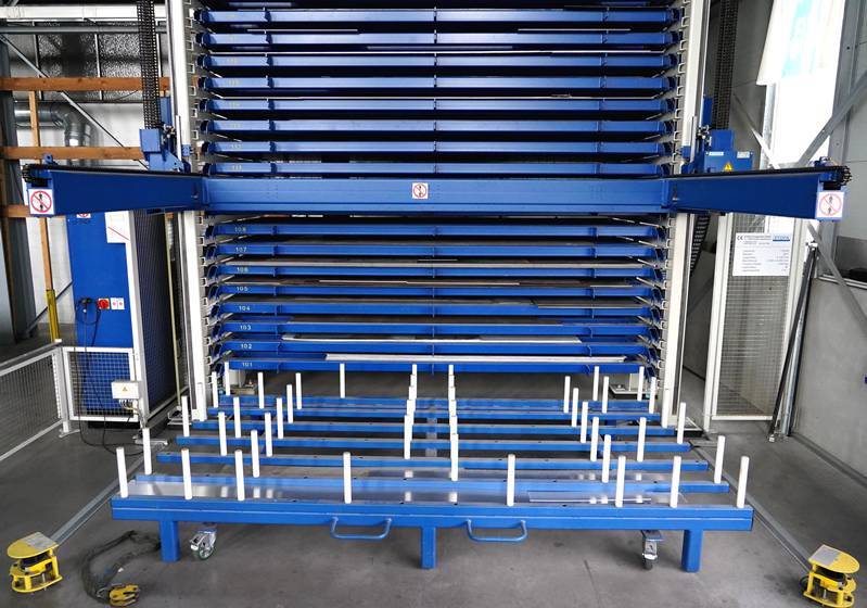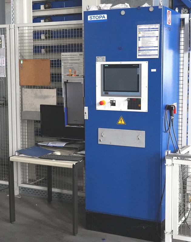 Stopa Typ 367761, RGB Mono, Bj. 2017. Automatisch für Tablets, Lagerhöhe 9.140 mm, Blechformat 2.000 x 4.000 mm. Traglast 3.000 kg/Palette. 18 Lagerplätze, 114 Tonnen Kapazität. Mit Inhalt, meist Aluminium ca. 5 Tonnen geschätzt. Mit Steuereinheit.