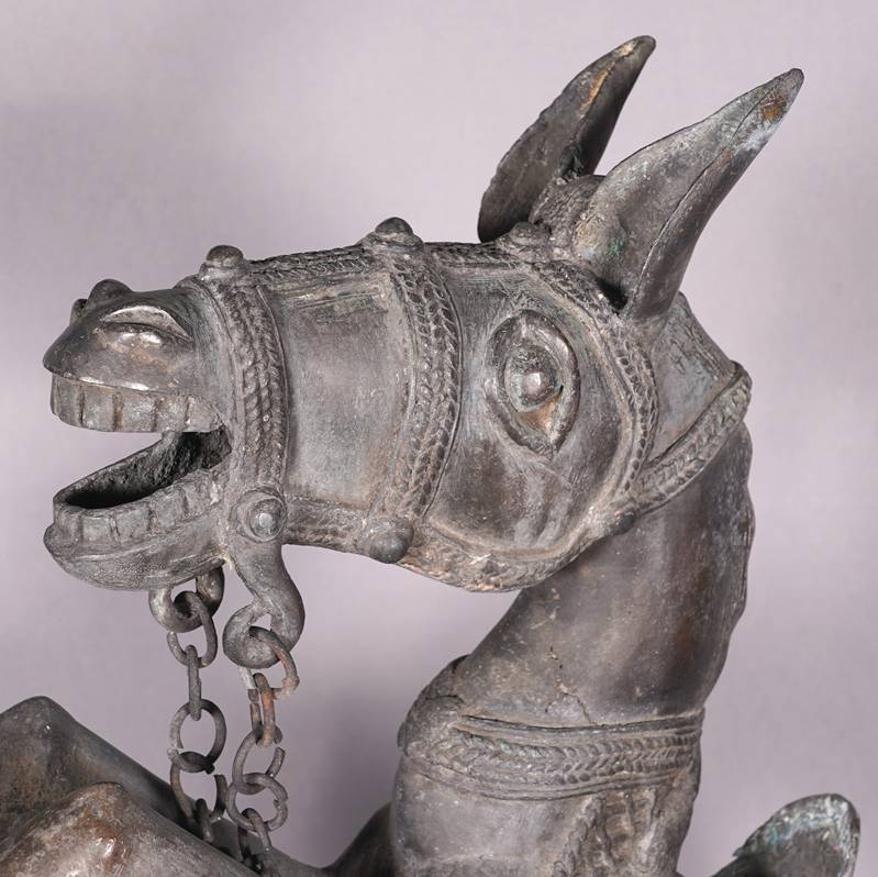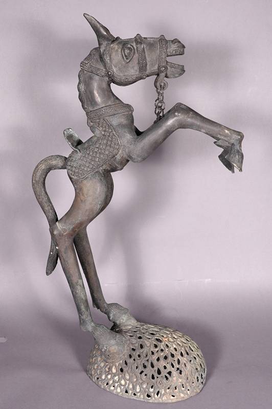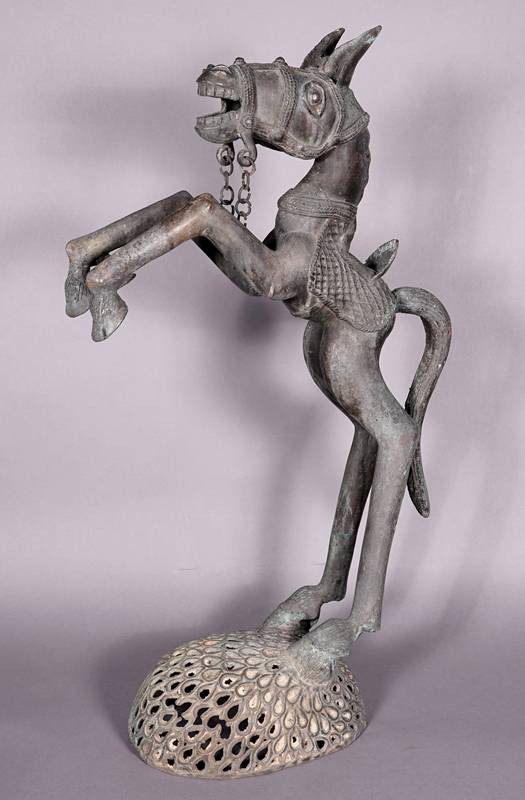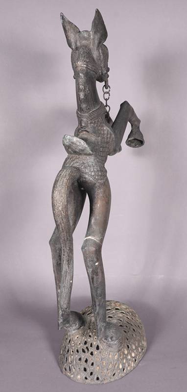 Benin 20. Jh. Metallguss, patiniert. Größe ca. 23 x 47 cm, Höhe ca. 81 cm. Gewicht ca. 12,1 kg. Zustand wie abgebildet.