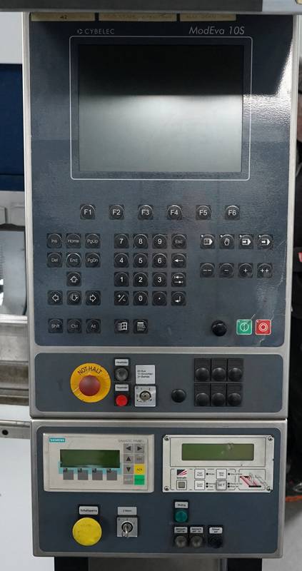 EHT Variopress 230-40. Bj. 2012. 2-D Grafiksteuerung Cybelec ModEva 10S. Abkantlänge 4.050 mm, Presskraft 230To. Ständerweite 3.350 mm. Man. Ober/Unterwerkzeugklemmung. Inklusive einem Werkzeugschrank mit viel Zubehör.