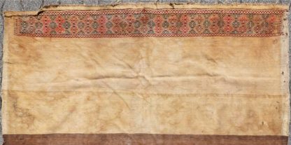 Afshari Um 1900. Zeltbehang. Hauptbordüre mit aufgereihten Rosen auf schwarzem Grund. Rotes Innenfeld mit Muster aus stilisierten Blumen im Rapport. Größe ca. 220 x 195 cm, ca. 4x5 Knoten/qcm. Gewicht ca. 6,8 kg. Gebrauchter Zustand wie abgebildet.