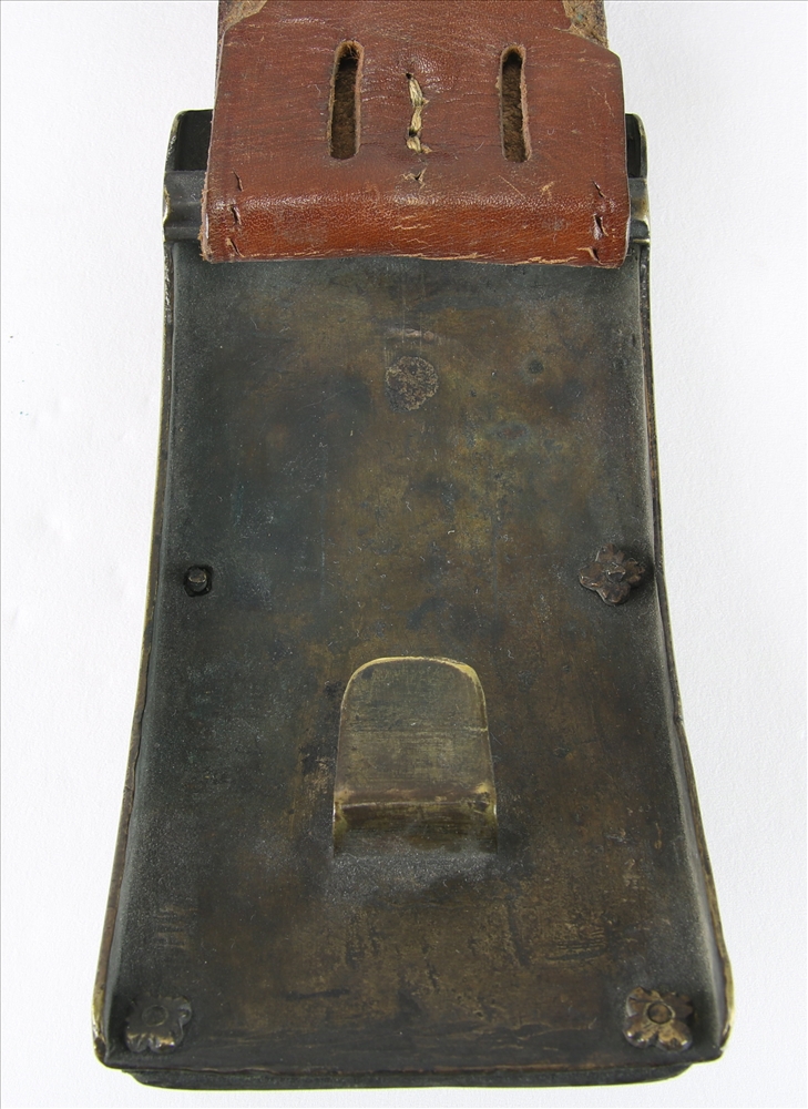 Barock, 18. Jh. Ledergürtel mit durchbrochen gearbeitetem Bronzeschloß mit jagdlicher Szenerie und Monogramm JGW. Länge ca. 92 cm, Größe des Schlosses ca. 13 x 7 cm. Altersbedingt guter Zustand.