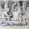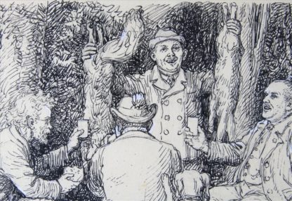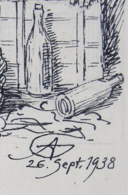 1878 Wehr - 1971 Tüllingen. Zum 57. Geburtstag. Gehöhte Tuschezeichnung auf Papier. Unten rechts signiert und datiert 1938. Größe ca. 11,5 x 15 cm, hinter Glas gerahmt ca. 17,5 x 22 cm. Guter Zustand.
