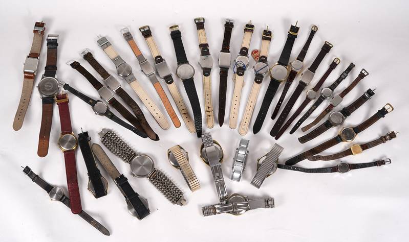Großes Konvolut Armbanduhren Ca. 30 diverse wie abgebildet. Davon ca. 20 mit mechanischen Werken und 10 mit Quarzwerken. Nicht geprüft.