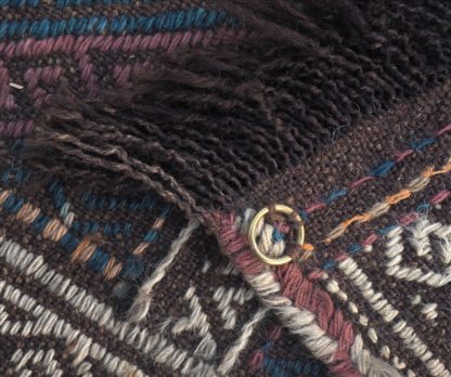 Kelim um 1920. Wolle. Zeltdekoration mit Mehrfachbordüre und fünf Feldern mit geometrischen Elementen. Größe ca. 176 x 53 cm, ca. 9 Knoten/qcm.