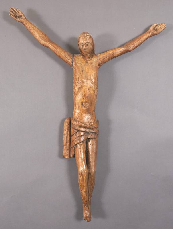 Wohl süddeutsch, romanisch. Holz, vollrund geschnitzt. Größe ca. 64 x 45 cm. Altersbedingter Zustand wie abgebildet. Aus der Sammlung von Hans Jakob Wörner, dem zuständigen Denkmalpfleger bei der Restauration von St. Blasien.