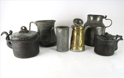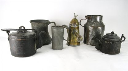 Meist 19. Jh. asiatischer Raum. Diverse Formen und Materialien. Größtes Gefäß ca. 19 x 19 cm. Gesamtgewicht aller Teile ca. 4,5 Kilogramm. Altersbedingt guter Zustand.