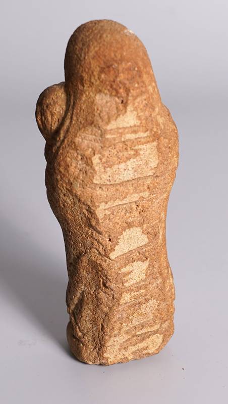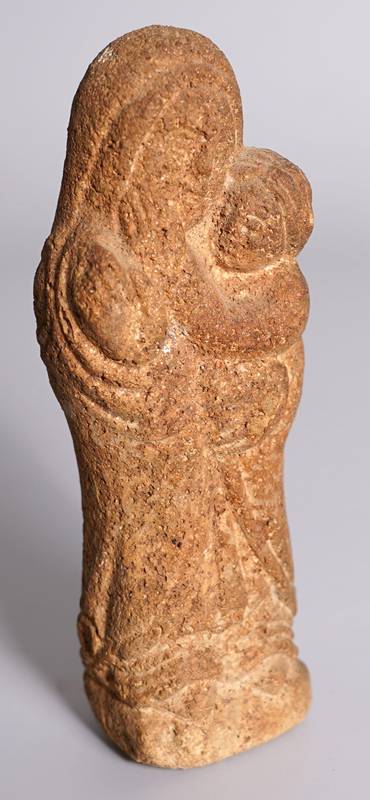 Wohl romanisch. Stein. Gottesmutter im Mantel mit Christuskind. Größe ca. 3,5 x 2,5 cm, Höhe ca. 11,5 cm, Gewicht ca. 196 Gramm. Zustand wie abgebildet. Bitte selbst besichtigen.