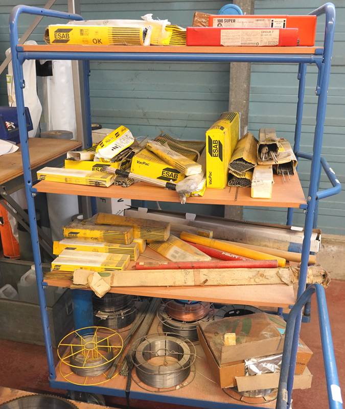 Transportwagen mit Schweißstäben.