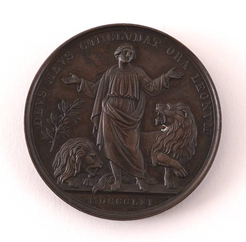 Pius IX. Bronzemedaille 1861. Gegen die Feinde des Kirchenstaates. Durchmesser ca. 4,4 cm, Gewicht ca. 38,7 Gramm. Bitte selbst besichtigen.