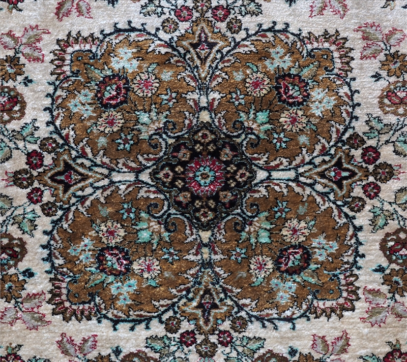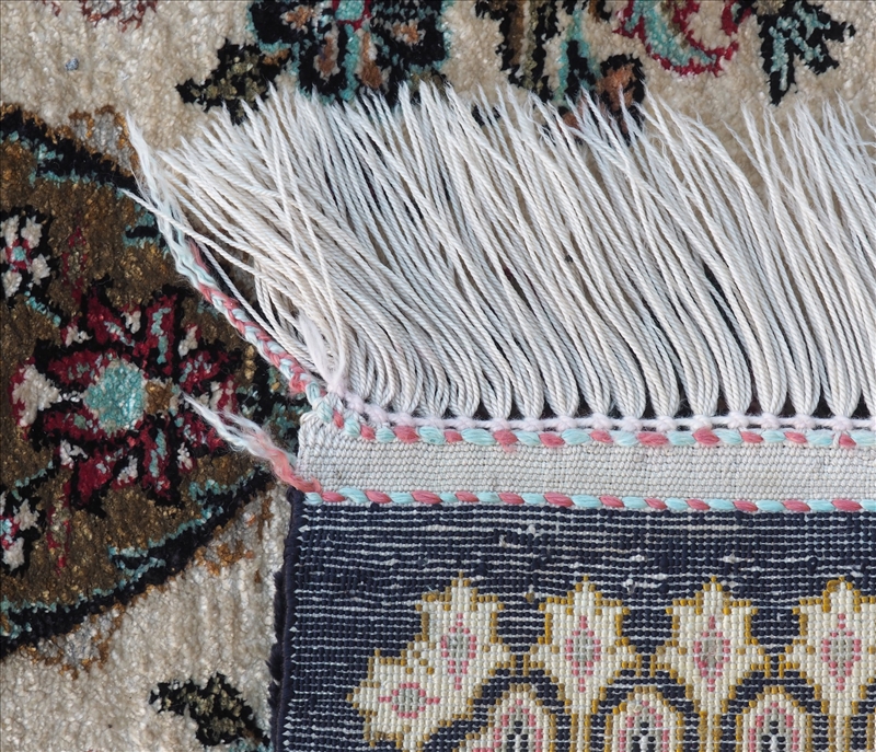 Persien 20. Jh. Seide. Galerie mit Mehrfachbordüre und rechteckiges Innenfeld, floral durchgemustert. Größe ca. 221 x 81 cm, ca. 64 Knoten/qcm.