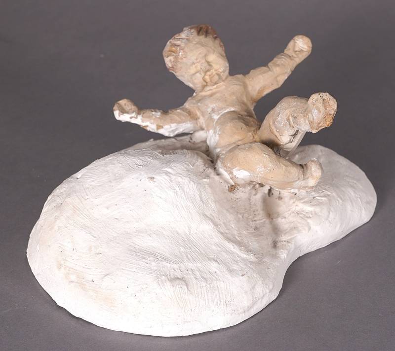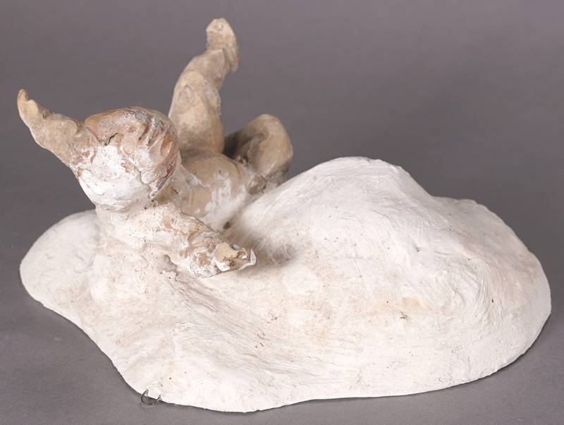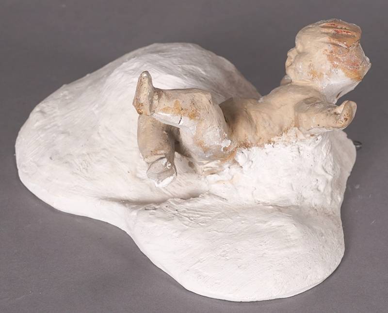 Keramik, teils polychrom staffiert. Aus der Weihnachtskrippe des neuerbauten Domes von St. Blasien um 1770, Wolke vom Stukkateur Silchen 1980 (laut Informationen der Einlieferer). Größe ca. 24 x 11 cm, Höhe ca. 20 cm. Zustand wie abgebildet. Aus der Sammlung von Hans Jakob Wörner, dem zuständigen Denkmalpfleger bei der Restauration von St. Blasien.