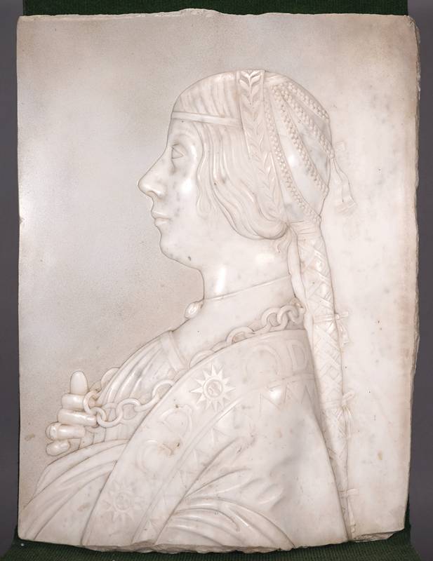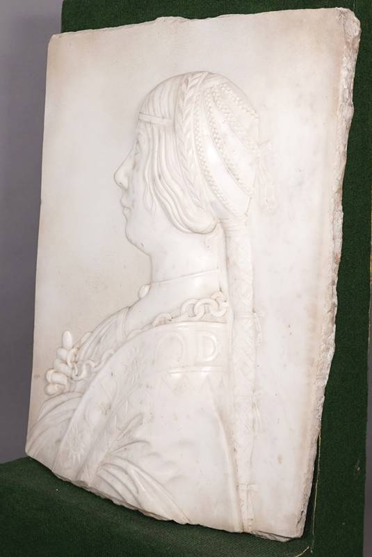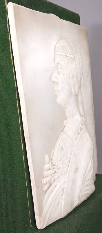 Nach einer Grabbüste von Matteo Civitali (1435-1501). Marmor. Größe ca. 64 x 48 cm, Gewicht ca. 23 kg. Kein Versand möglich, wir empfehlen gerne eine Spedition.