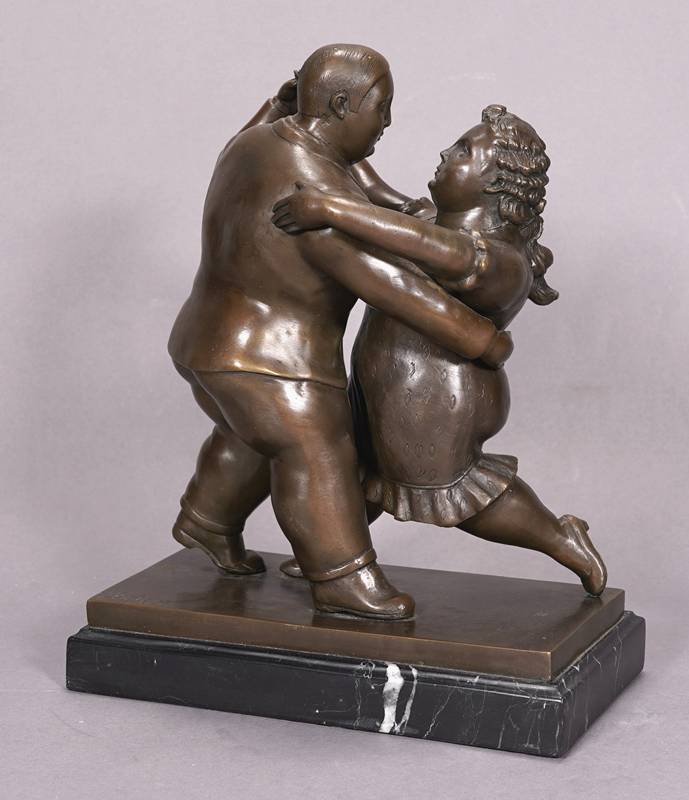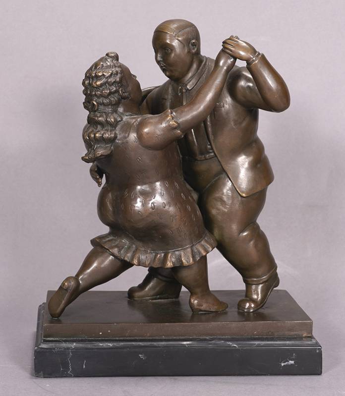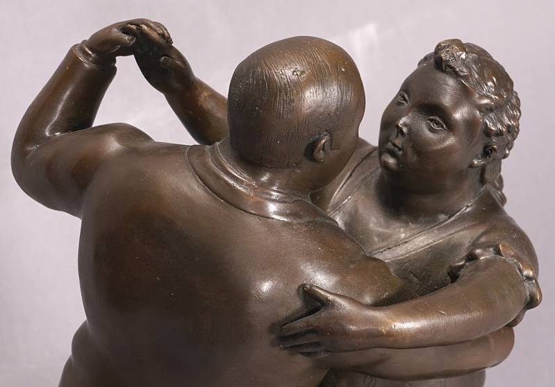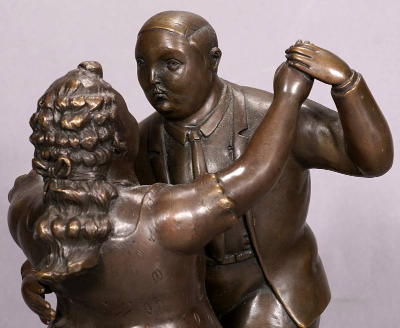 1932 Medellin - 2023 Monaco, nach. Tango tanzendes Paar. Metallguss auf Marmorplinthe. Auf dem Boden bezeichnet. Größe ca. 24 x 13 cm, Höhe ca. 30 cm, Gewicht ca. 7,1 kg. Zustand wie abgebildet.