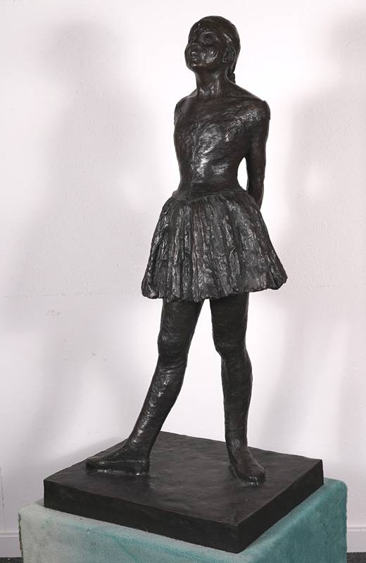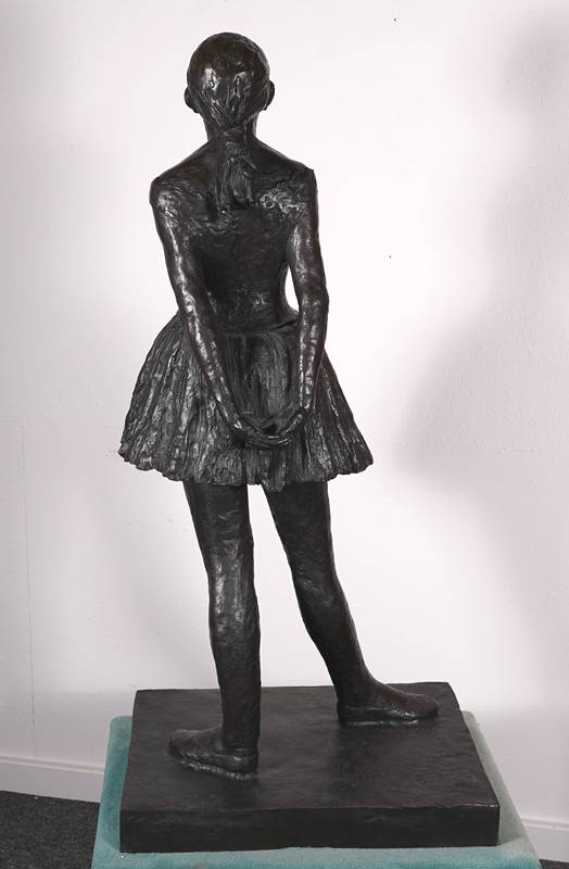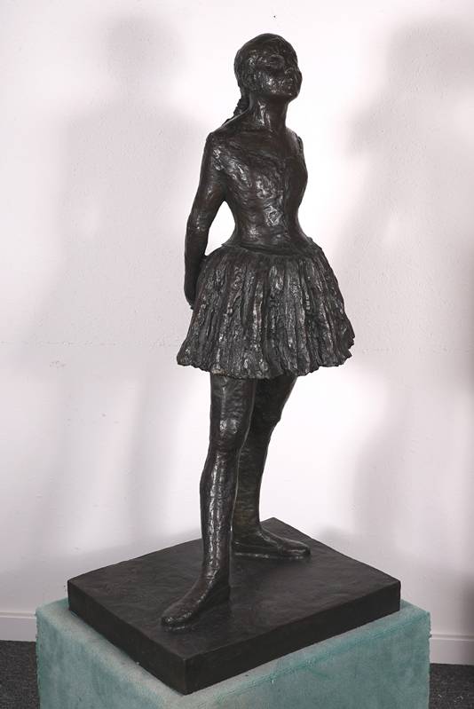 1834 Paris - 1917 ebd, nach. "Petite danseuse de quatorze ans". Bronze, patiniert. Auf dem Stand bezeichnet. Posthumer Guss nach der Plastik, welche Degas 1881 auf der Impressionisten-Ausstellung zeigte. Größe ca. 44 x 35 cm, Höhe ca. 92 cm. Teils berieben. Provenienz: Kunstauktionshaus Schloss Ahlden 2023. Kein Versand möglich, wir empfehlen gerne eine Spedition.