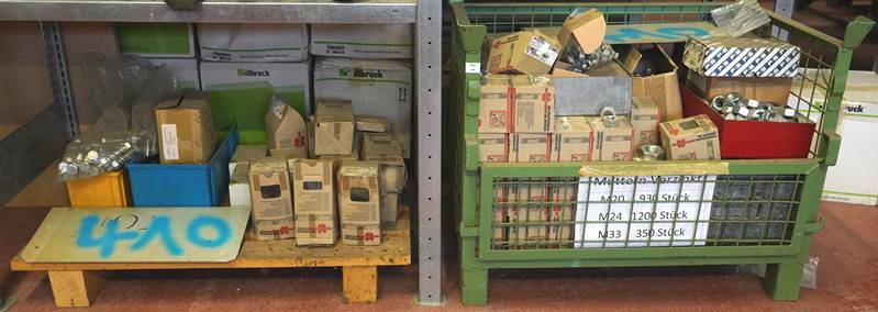 Posten Muttern und Schrauben, diverse Größen auf zwei Paletten
