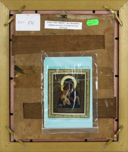 19. Jh. Gottesmutter mit Kind. Tempera auf Holz. Verso Sammleretiketten, beiliegendes estnisches Zertifikat mit Ausfuhrbescheinigung. Größe Rahmen ca. 28 x 33 cm, Stärke Ikone ca. 2,5 cm.