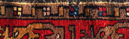 Hamadan Iran ca. 1970. Wolle auf Baumwolle. Dreifachbordüre und florales Innenfeld mit Eckzwickeln und einem zentralen Medaillon. Auf rotem Grund. Größe ca. 216 x 135 cm, ca. 49 Knoten/qcm.
