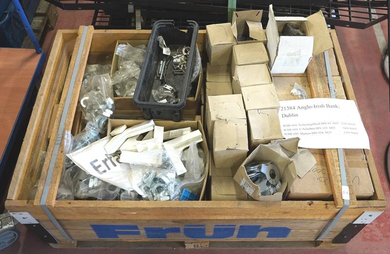 Posten Material Schrauben, Muttern, Sicherungen auf Palette.