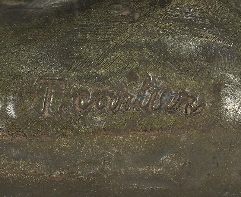 Cartier, Thomas-Francois 1879 Marseille -1943 Paris (nach). Metallguss, Bronze patiniert. Fauchender Tiger. Vorne signiert, hinten Gießereiplakette. Größe ca. 30 x 7 cm, Höhe ca. 18 cm. Gewicht ca. 2,48 kg. Teils berieben. (Nr. 150) 1879 Marseille -1943 Paris (after). Cast metal, patinated bronze. Snarling tiger. Signed in front, foundry plaque on the back. Size approx. 30 x 7 cm, height approx. 18 cm. Weight approx. 2,48 kg. Partly rubbed.