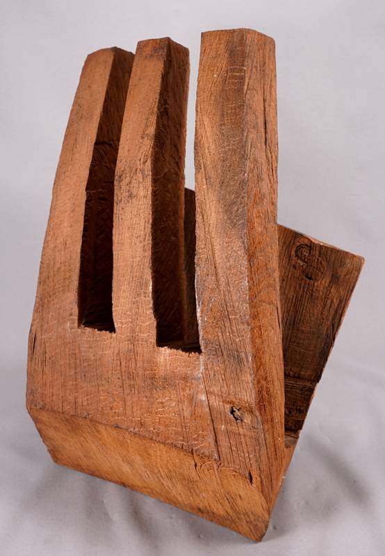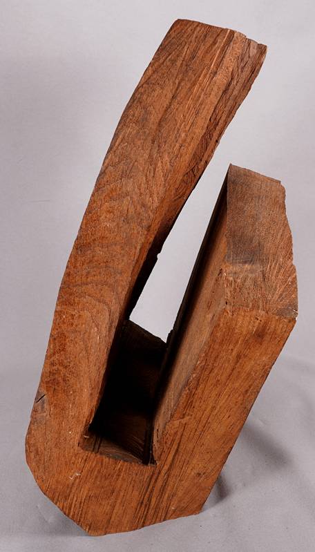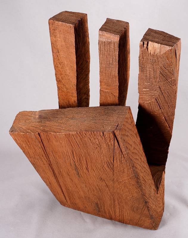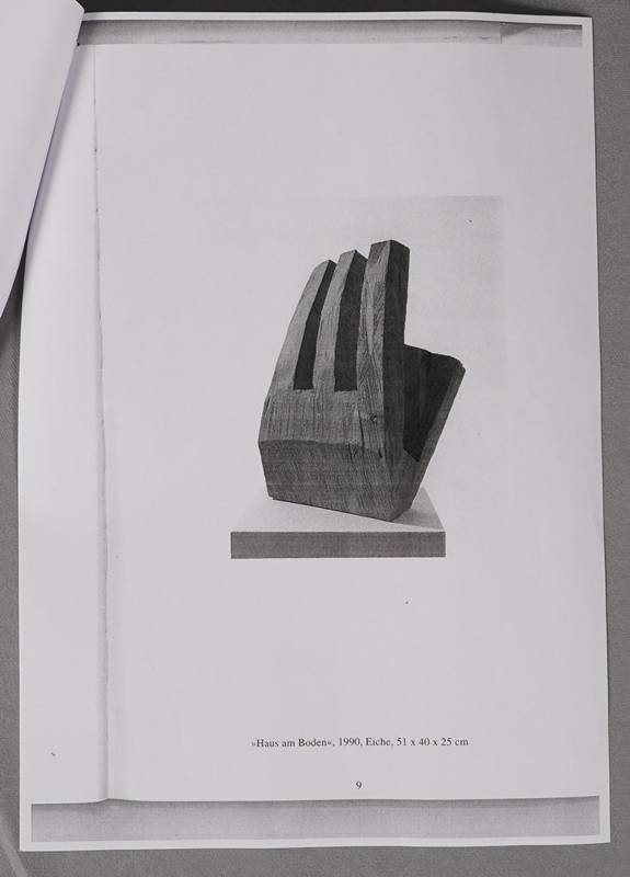 Pokorny, Werner 1949 Mosbach - 2022 Ettlingen. "Haus am Boden", 1990. Eiche. Größe ca. 40 x 25 cm, Höhe ca. 51 cm, Gewicht ca. 10,1 kg. Aus einer süddeutschen Sammlung. Mit Dokumentation der Städtischen Galerie Wendlingen am Neckar. WVZ 182/1990/23/H.