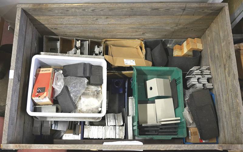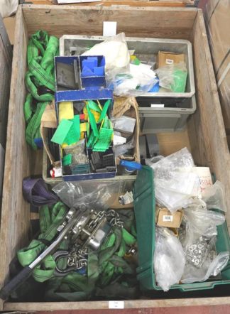 Posten Stahl/Aluwinkel und Verbinder in Holzpalette.
