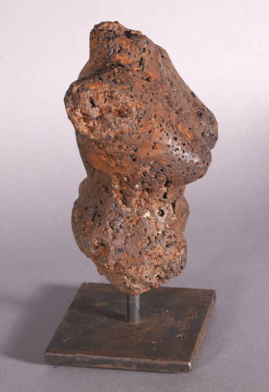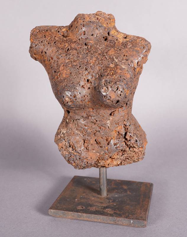 Weiblicher Torso Unbekannter Künstler. Torso auf metallischer, quadratischer Platte montiert. Auf der Platte gestempelt, nummeriert und wohl datiert mit Dreieck 06 und 72. Größe ca. 16,5 x 13 cm, Höhe ca. 25,5 cm. Gewicht ca. 3,5 kg.