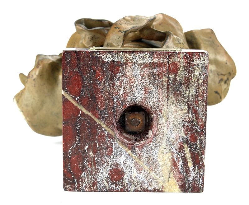 1885 - 1940. Büste einer jungen Schönen im tief dekolletierten Kleid. Metallguß, patiniert und Steingußsockel. Darauf mit Plakette bezeichnet "Maxim" und "Brune". Größe ca. 17 x 10 cm, Höhe ca. 29 cm, Gewicht ca. 2,2 Kilogramm. Teils besch.