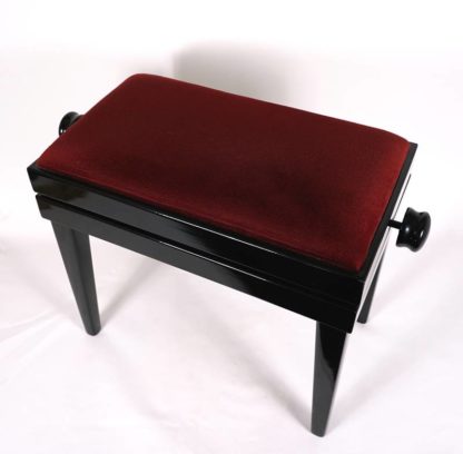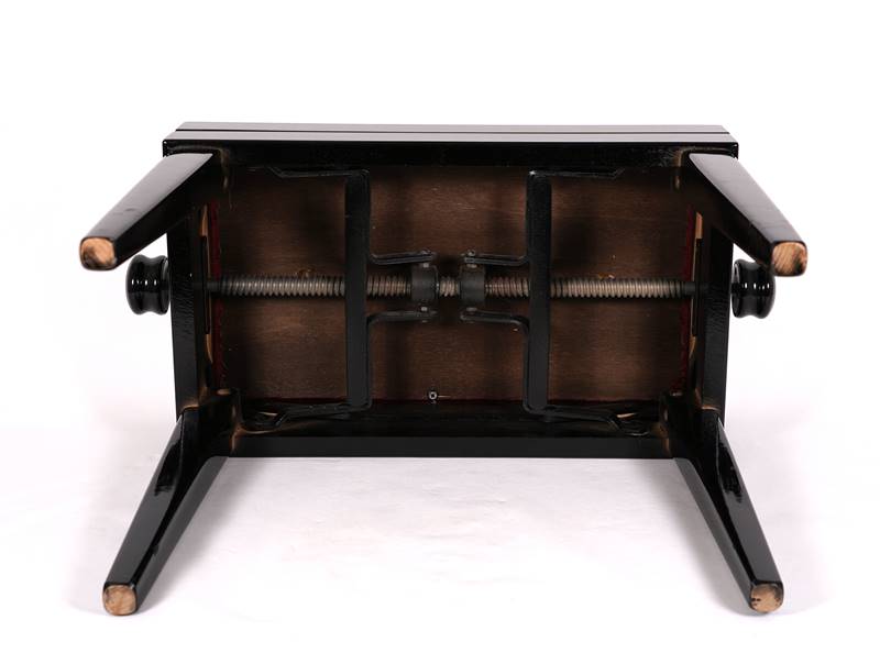 Klavierhocker 20. Jh. Klavierlack, höhenverstellbar. Größe ca. 31,5 x 53 cm, 47 cm.