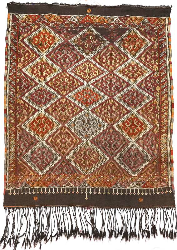 Kelim Türkei 20. Jh. Flachgewebter Wandteppich mit geometrischem Muster. Größe ca. 128 x 106 cm. (Nr. 571)
