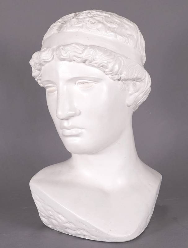 Römische Büste Gipsbüste der Athena Lemnia nach antikem Vorbild. Größe ca. 31 c 23 cm, Höhe ca. 42 cm. Gewicht ca. 11,5 kg. Teils bestoßen. Aus der Sammlung von Hans Jakob Wörner, dem zuständigen Denkmalpfleger bei der Restauration von St. Blasien.