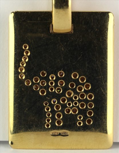 Deutsch 20. Jh. GG 750 punziert sowie Meistermarke. Auf der Platte Diamanten in Elefantenform. Größe ca. 30 x 22 mm, Gewicht ca. 19,1 Gramm.