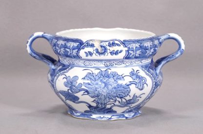 Cachepot China, wohl 20. Jh. Porzellan mit blauer Blumenmalerei. Seitlich zwei Handhaben. Unter dem Boden mit Pinselmarke. Durchmesser ca. 20 cm, Höhe ca. 15 cm. Zustand wie abgebildet, bitte selbst besichtigen.