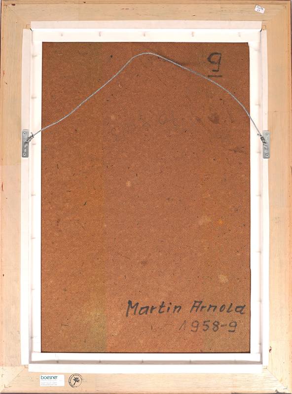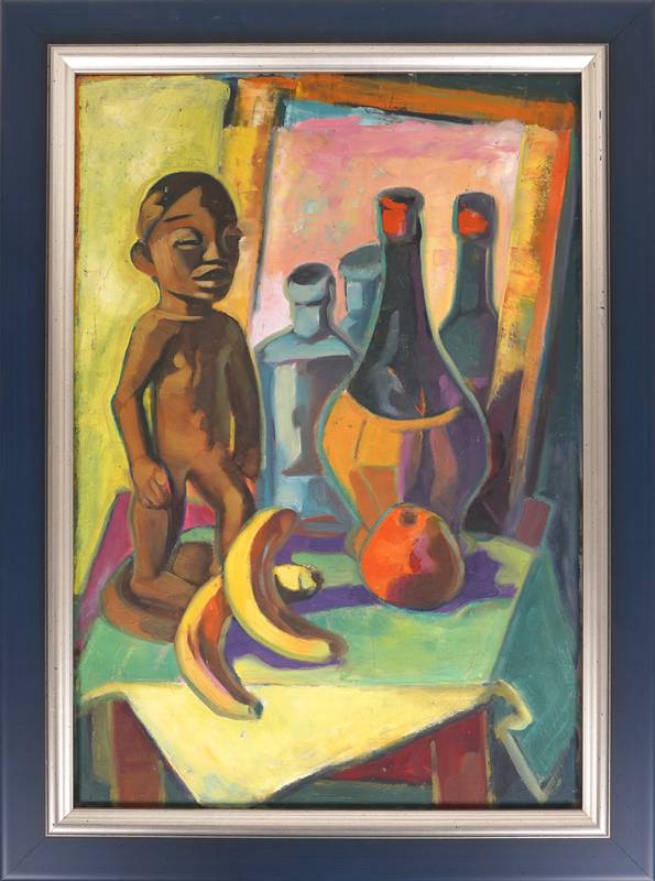 1906 Weingarten - 1965 ebd. Stillleben mit Banane und Skulptur. Öl auf Platte. Verso signiert und datiert 1958-9. Größe ca. 63 x 44 cm, Rahmen ca. 74 x 55 cm.