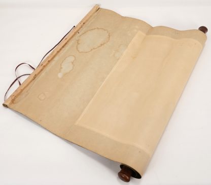 Japan 19. Jh. Tusche auf Seide. Kleines Boot im Vordergrund, im Hintergrund erhebt sich ein Gebirge. Oben links Schriftzeichen und Signatur. Länge der Rolle ca. 135 cm, Breite ca. 48 cm. Altersbedingter Zustand.