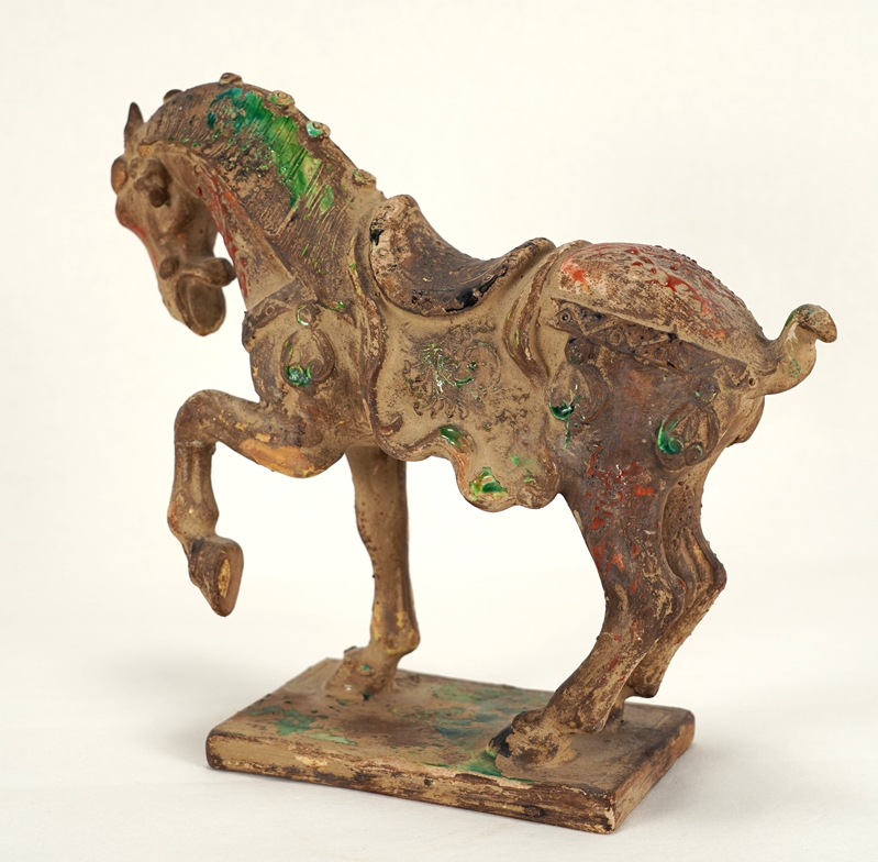 Tang Pferd Wohl Nachbildung aus der Qing-Dynastie. Ton mit Resten der alten, polychromen Fassung. Größe ca. 25 x 10 cm, Höhe ca. 21 cm.