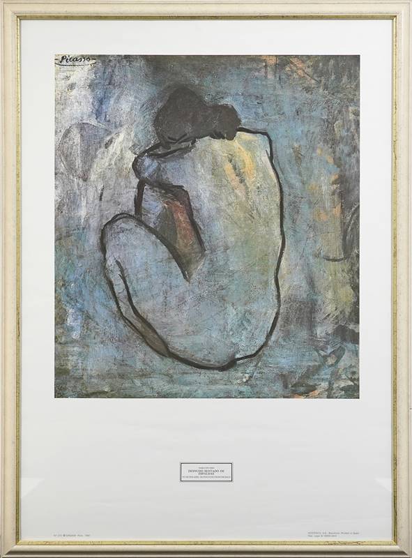 1881 Málaga - 1973 Mougins. Nach. Blauer Akt, 1902. Seated Nude from the back/Desnudo sentado de Espaldas. Offsetdruck. Nr. 310 Spadem, Paris. Printed in Spain. Hinter Glas gerahmt. Bildgröße ca. 45,5 x 40 cm, Rahmen ca. 74 x 54 cm.