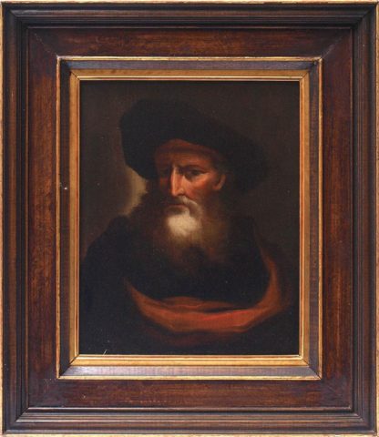 19. Jh. Bildnisse zweier alter Männer im Stil des 17. Jahrhunderts. Öl auf Holz, verso jeweils Etikett mit Bezeichnung 1 Oelbild auf Holz, Kopf eines alten Mannes und die Nummer 13449 bzw. 13449a. Größe ca. 34 x 27 cm. Rahmen ca. 47 x 41 cm.