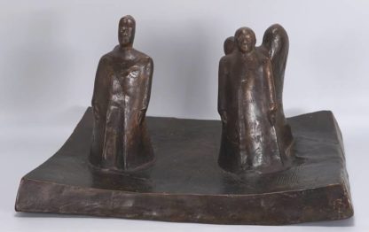 Kampmann, Walter 1887 Elberfeld - 1945 Berlin. Figurengruppe. Patinierte Bronze. Seitlich monogrammiert und datiert (19)43, unter dem Boden bezeichnet und nummeriert 4/5. Größe ca. 36 x 27 cm, Höhe ca. 20 cm, Gewicht ca. 6,6 kg. Altersbedingter Zustand wie abgebildet. Aus einer Pfälzer Privatsammlung.
