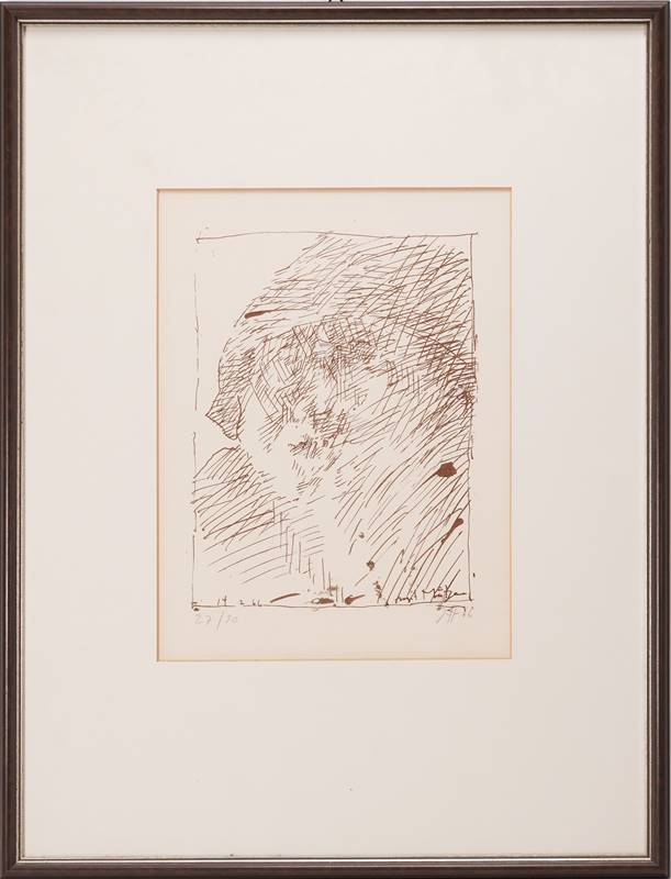 Janssen, Horst 1929 Wandsbek - 1995 Hamburg. Die Mütze, 1966. Lithographie. Unter dem Bild nummeriert 27/30 und signiert. Passepartoutausschnitt ca. 29,5 x 22 cm, hinter Passepartout und Glas gerahmt ca. 55 x 42 cm.