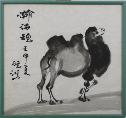China um 1900. Aquarell auf Papier. Darstellung eines Kamels. Mit diversen Kalligraphie Zeichen links, darunter wohl Künstlerstempel. Hinter Glas gerahmt. Größe ca. 50 x 54 cm, Rahmen ca. 52 x 56 cm. Teils fleckig. Erinnert an den Stil von Pan Tianshou, Wang Fu´An, Wu Zuoren.