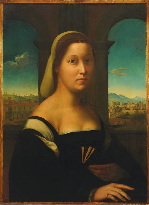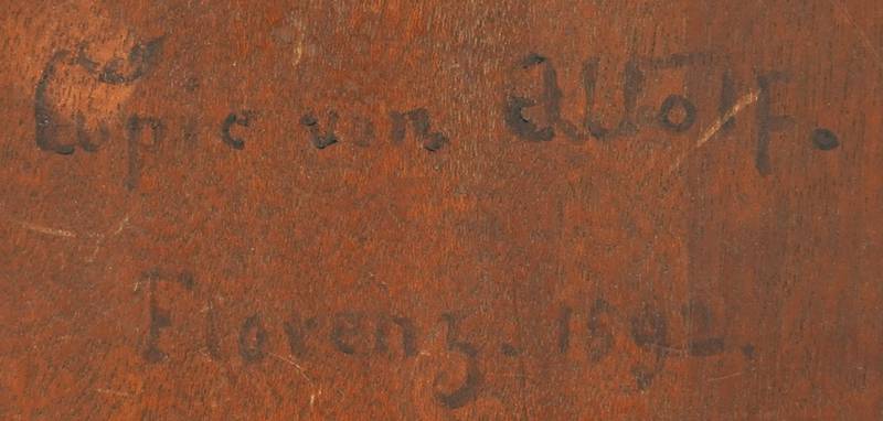 Bugiardini, Giuliano Kopie nach dem Gemälde "La Monaca", welches sich heute in den Uffizien befindet. Öl auf Holz. Verso bezeichnet "Copie von Adolf, Florenz 1892". Größe ca. 66 x 48 cm.