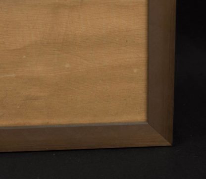 Japanisches Rollbild Japan 19. Jh. Meiji-Periode. Zusammenkunft im Tempel. Mischtechnik auf Seide, gerahmt von Reispapier. Größe ca. 82 x 40 cm, hinter Glas gerahmt ca. 102 x 58 cm. Teils geknickt.