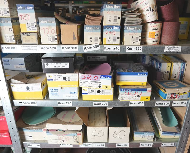 Regalinhalt einteilig mit diversem Schleifmaterialien. Trennscheiben etc.