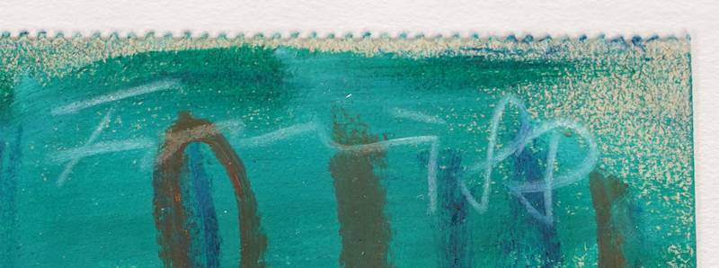 1952 Füssen - 2013 Freiburg. Ohne Titel. Ölkreide auf Papier. Oben links signiert und datiert (19)88. Blattgröße ca. 32 x 24 cm. Hinter Glas gerahmt ca. 38 x 32 cm. WVF.88.P.1840. Rahmen nicht geöffnet. Wir danken Herrn Michael Neff vom Estate Günther Förg für die freundliche Bestätigung der Authentizität dieser Arbeit.