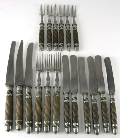 Wohl deutsch 18. Jh. Holz mit versilberter Ziermontur und Stahl. Länge Messer ca. 24,5 cm. Altersbedingter Zustand.