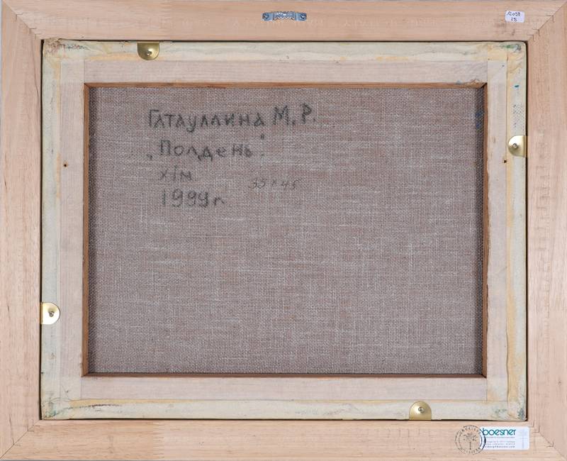 1971 Russland. "Mittagspause (Полдень)". Öl auf Leinwand. Unten rechts monogrammiert, verso in kyrillischer Schrift signiert, betitelt und datiert 1999. Größe ca. 35 x 45 cm, Rahmen ca. 43 x 53 cm.