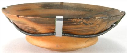 7. - 6. Jh v. Chr. Tiefgemuldeter Fond mit schräg ausgestellter Wandung auf vorspringendem konischen Boden mit rundem Stand. Hellroter Ton mit changierender Firnisbemalung in Brauntönen. Durchmesser ca. 14,5 cm, Höhe ca. 5 cm. Altersbedingt guter Zustand mit Wandmontierung. Provenienz: Süddeutscher Privatbesitz seit den 1970-er Jahren.
