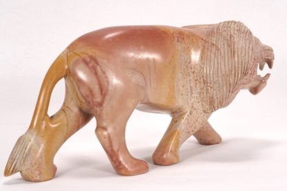 Steinskulptur Südafrika 20. Jh. Mookaitjaspis. Schreitender Löwe. Größe ca. 33 x 12 cm, Höhe ca. 15 cm, Gewicht ca. 3,9 kg.